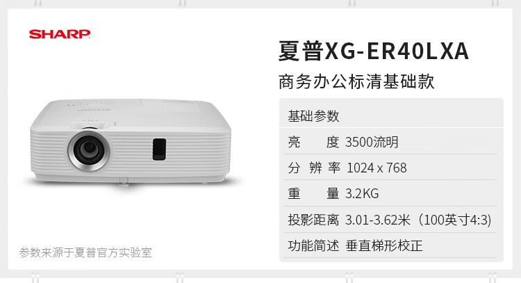 夏普/Sharp XG-ER40LXA 投影儀 商務(wù)辦公 教學(xué)培訓(xùn) 家用 酒店會(huì)議投影儀 標(biāo)清3500流明 白天直投 官方標(biāo)配
