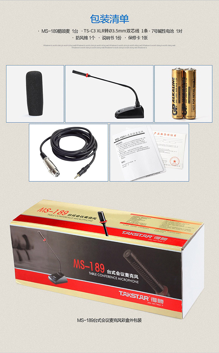 得勝/TAKSTAR MS-189 麥克 會議臺式鵝頸麥克風 專業(yè)演出舞臺主持話筒 典雅黑